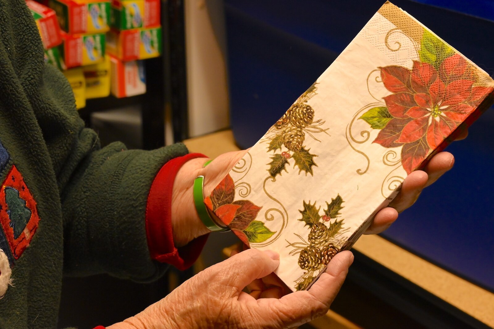 Representatives with the Smithsonian’s National Museum of American History have met with her because they want to include her napkins with an Americana theme in their collection when she decides to part with them.