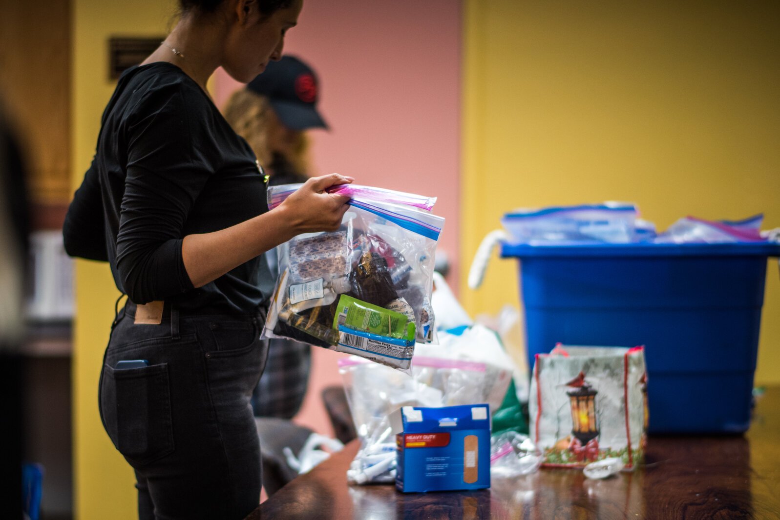 That’s how U4U and Romanian aid workers ended up at the ENA’s kitchen and community room, making food and assembling survival kits, which they then passed out to people in need outside of the PFC on Oct. 25.