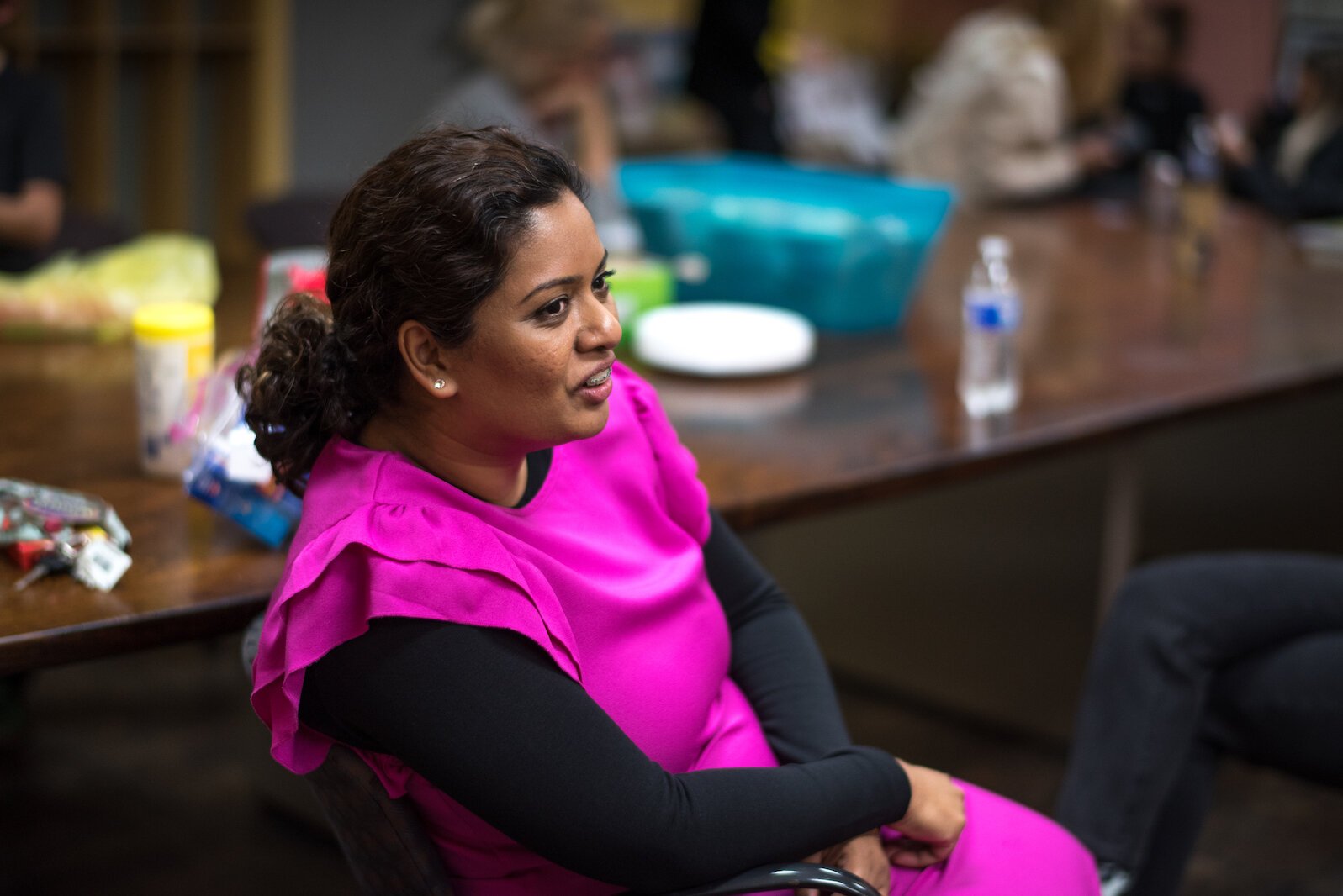 Sometimes Boone sees well-dressed volunteers drop off food or supplies, and then leave. She shows up at sites in her Pink Floyd sweatshirt — Boone proudly says she’d been mistaken for homeless when she’d arrived at shelters around town — and will work to build relationships with those who need help. She wants to convey the message that “it’s not like I’m so much better than you.”
