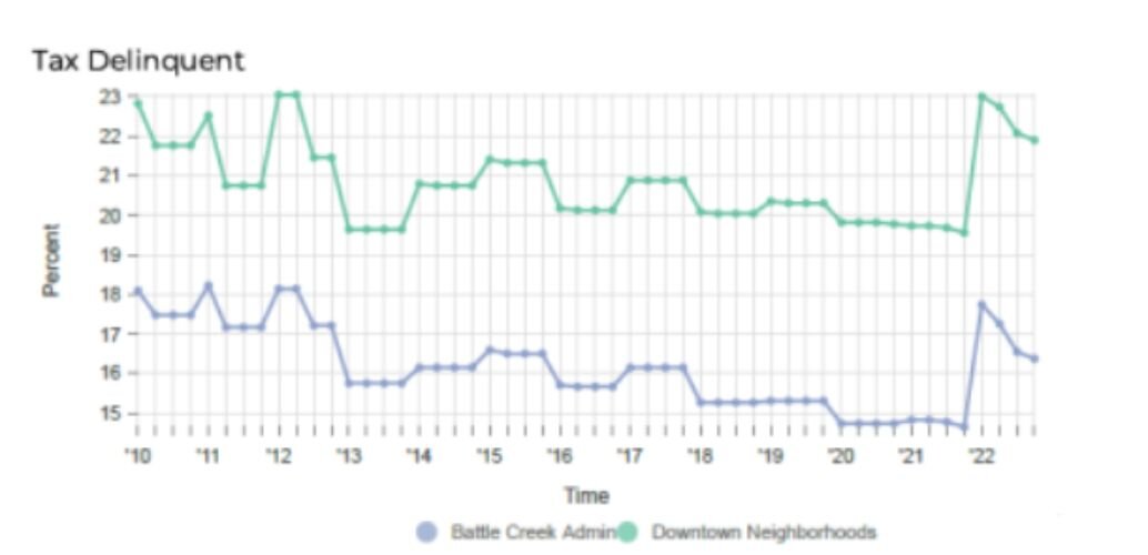 These two aspects led to the creation of the Calhoun County Land Bank Authority. In 2011-2013, the amount of vacant and derelict buildings reached its peak at around 1,200 abandoned properties. This number has decreased rapidly since then, now leaving the number of vacant properties on the registry at a low 403 today in 2022. The vacant properties are secured and monitored by City Code Compliance officers monthly.