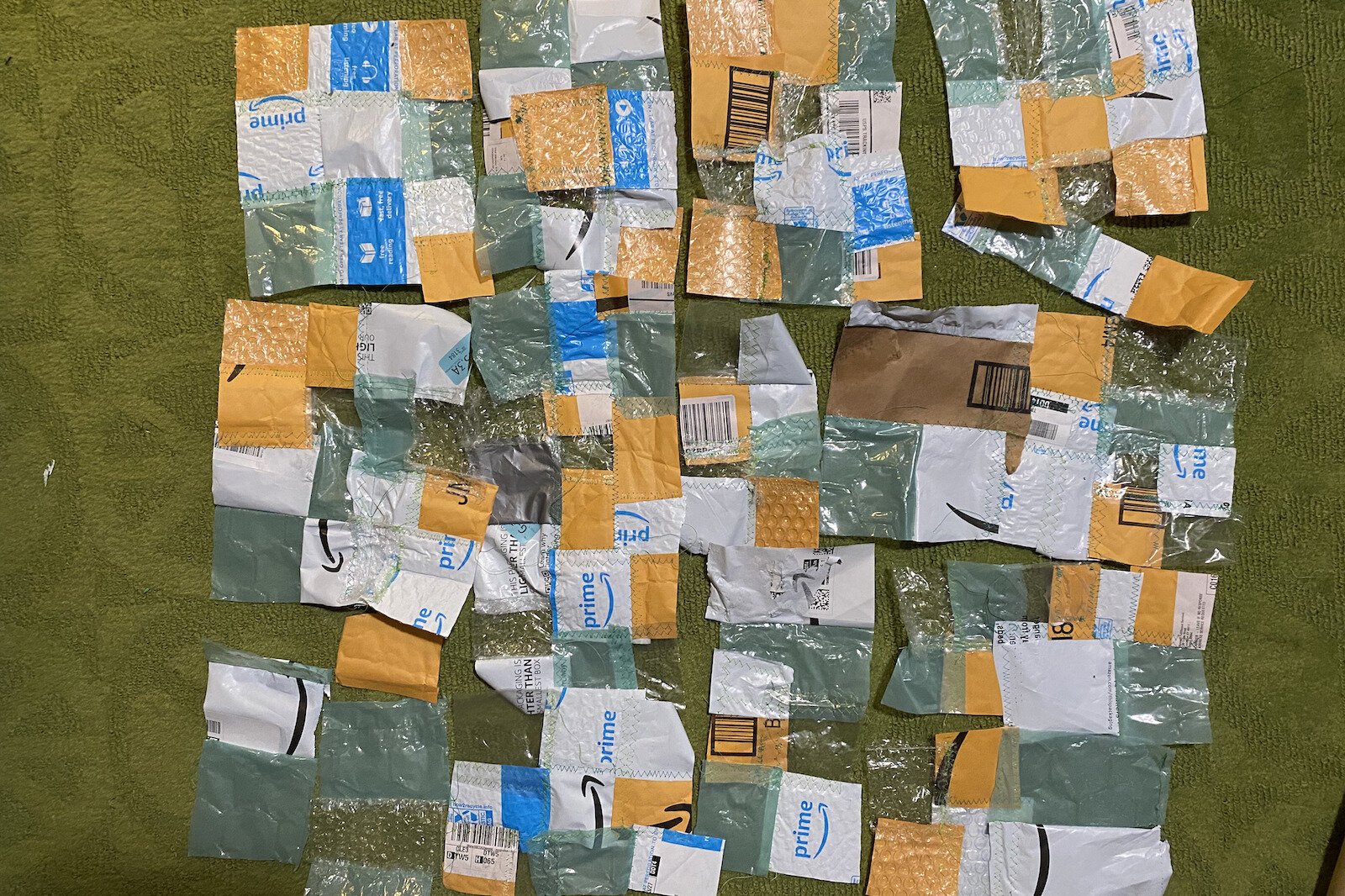 The combination of plastic shipping materials and greenhouse gas emissions used in the transportation of clothing inspired me to make my own fashion piece to demonstrate the extra packing material use and environmental cost of fast fashion.