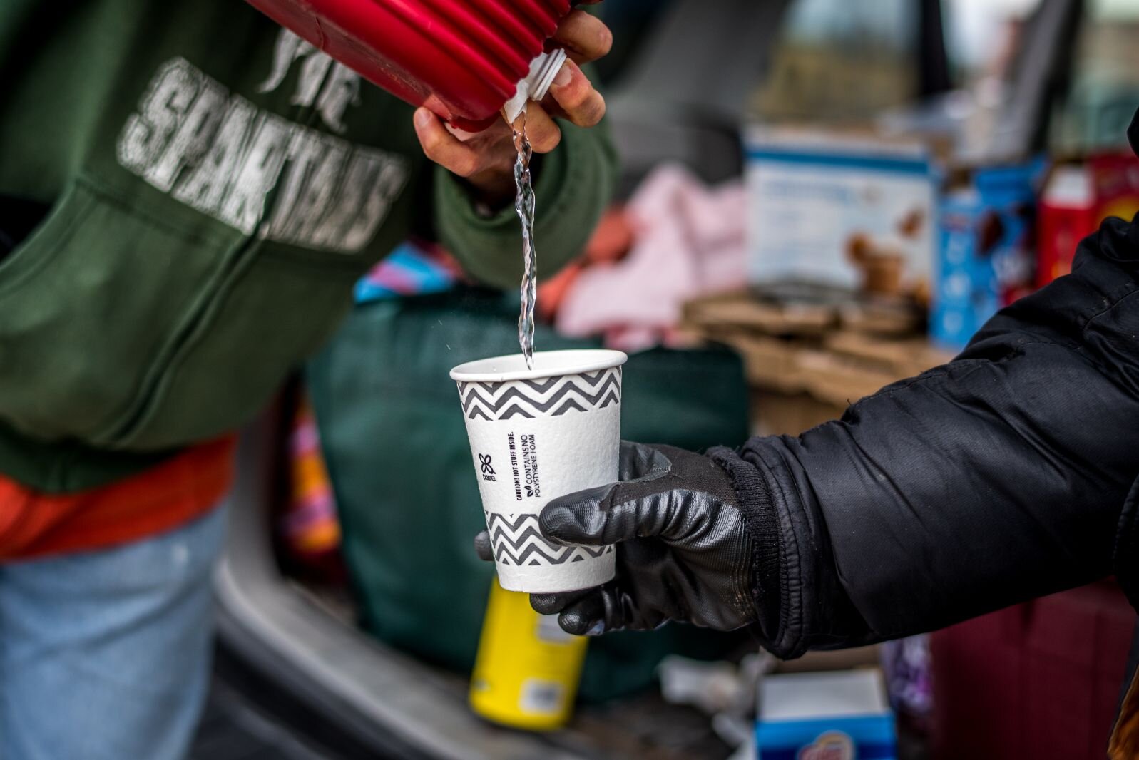 Jan van Schaik was expecting to help out while inside The River, but he was outside in the parking lot at Walbridge and East Willard, his car’s hatchback open, full of food, coffee, and hot chocolate.