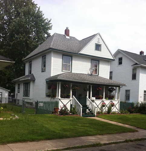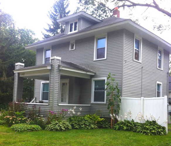 The son-in-law was Alfred Brownell (thus the street name), who owned Kalamazoo’s large windmill factory (in the mid- to late-1800s the city was also known for making windmills). The house is more than 3,000 square feet, Barnard says, with ornate plaster designs in the 9-1/2-foot tall ceilings, and originally had a wide, second-story porch with large pillars. It was built in 1878. The soffits (roof overhang) are 24 inches deep, with 22-inch by 60-inch windows, and a 9-foot-tall entry door. A maid’s quarters was built into the rear of the house.