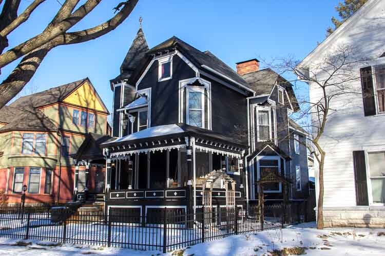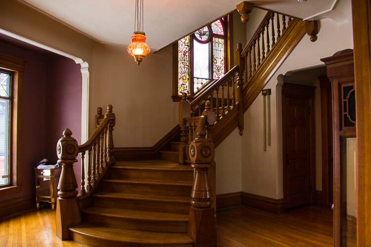 Since then, the couple has purchased two other 19th-century homes in the neighborhood and have their eyes on another. One of their purchases is their own home, a 4,000-square-foot Queen Anne Victorian house at 418 Stuart Ave. Called the French/Allen House, it was built in 1895 and has four bedrooms, 3.5 bathrooms, some stained-glass windows, a sweeping veranda, and an interior originally appointed by Chicago-based department store magnate Marshall Field.
