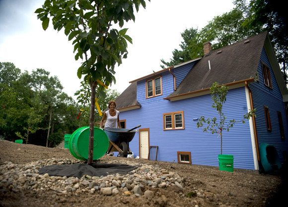 Sally Breyer helps finish the orchard that members at the Peace House planted. The orchard is filled with fruit trees.