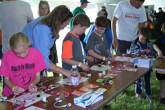 Kalamazoo was represented at the event by Hacker Gals’ founder Stacy Burdettte and by representatives of The Kalamazoo Makers Guild. Burdette reports that organizers took care of the Makers at the faire very well, offering assistance in unloading and feeding them pizza at lunch time.