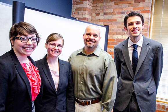 Savvy Dress Rentals, an upscale consignment boutique specializing in new and gently used fashion, was the business described in a pitch by the MBA students who took second place. Elizabeth Mooney of Kalamazoo; Andrew Eaton of Albuquerque, N.M.; and Gabriella Vezzosi of Livonia, Mich., received $1,000.